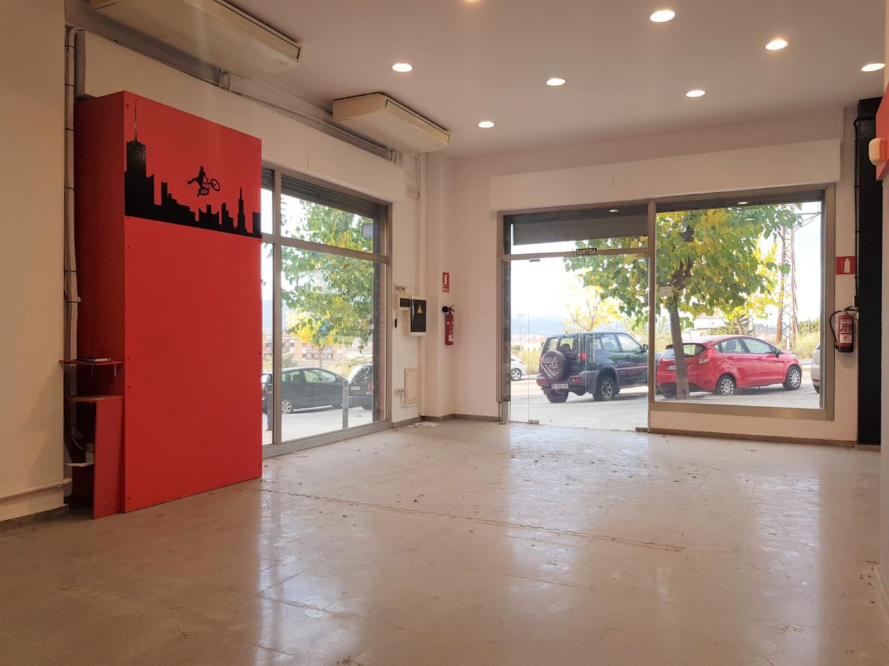 Local comercial ampli i lluminós en lloguer situat a la zona dels Trullols. Local de 104 m2 totalment diàfans i esta previst amb sortida de fums, te grans obertures a l' exterior i el seu emplaçament permet l'estacionament de vehicles. Disposa d'instal·lació elèctrica, il·luminació amb halogens, climatització , persianes motoritzades i sistema de seguretat . Situat en una zona d'hipermercats, cinemes i zones d'oci.