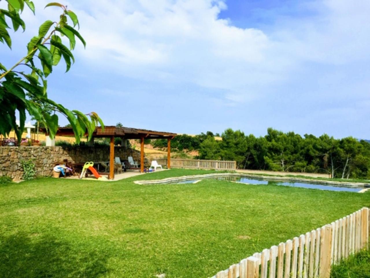 Masia con una edificacion por acabar la mitad de 940m2 en su totalidad, en una superficie rustica de 2 hectareas de terreno totalmente plano donde hay zona de piscina y chillout y otra de un pequeño bosque.Casa preparada y con permisos de turismo rural.