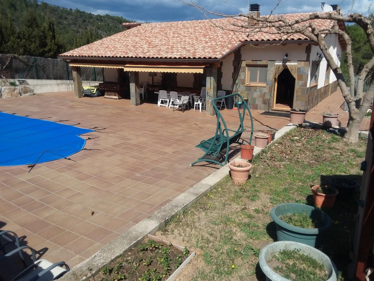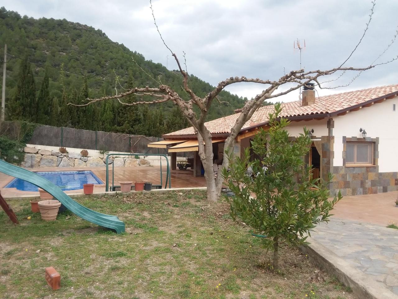 Casa aislada 129 m², totalmente reformada, parcela 7.100 m², 4 habitaciones dobles, comedor de 26 m² con precioso fuego a tierra, cocina de 13m², baño completo de 7 m², garaje, porche de 25 m², piscina , barbacoa, parque infantil, pista de frontón, calefacción de gasoil, videoportero, orientación sur, situada en el parque natural de Montserrat, comunicada por A 2 y C 58, linea de autobús 750 Manresa - Marganell, rutas de senderimo, hípica, restaurantes. VIVE E