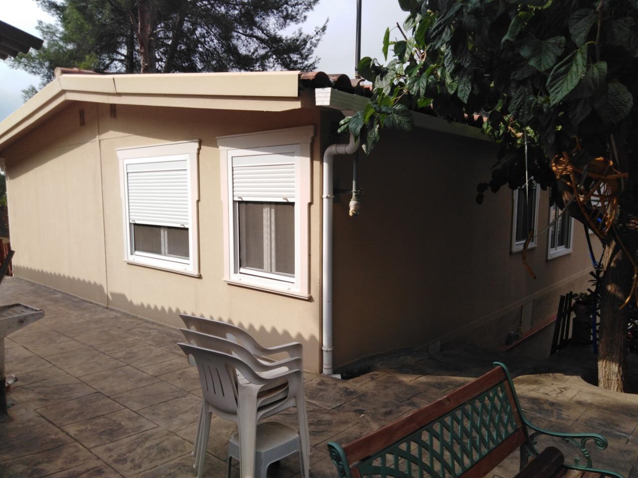 PRECIOSA CASA PREFABRICADA DE 131 m² construidos, con una espaciosa parcela de 400 m². Dispone de 2 habitaciones dobles y una individual, una de ellas es una confortable suit. Luminoso comedor donde pasar horas en familia, cocina cálida donde preparar las mejores comidas y 2 baños, uno de ellos con plato de ducha. Equipada con calefacción de gas natural y vidrios dobles. Amplio garaje, pero lo mejor de esta bonita casa es su exterior, con grandes zonas donde disfrutar del sol, de