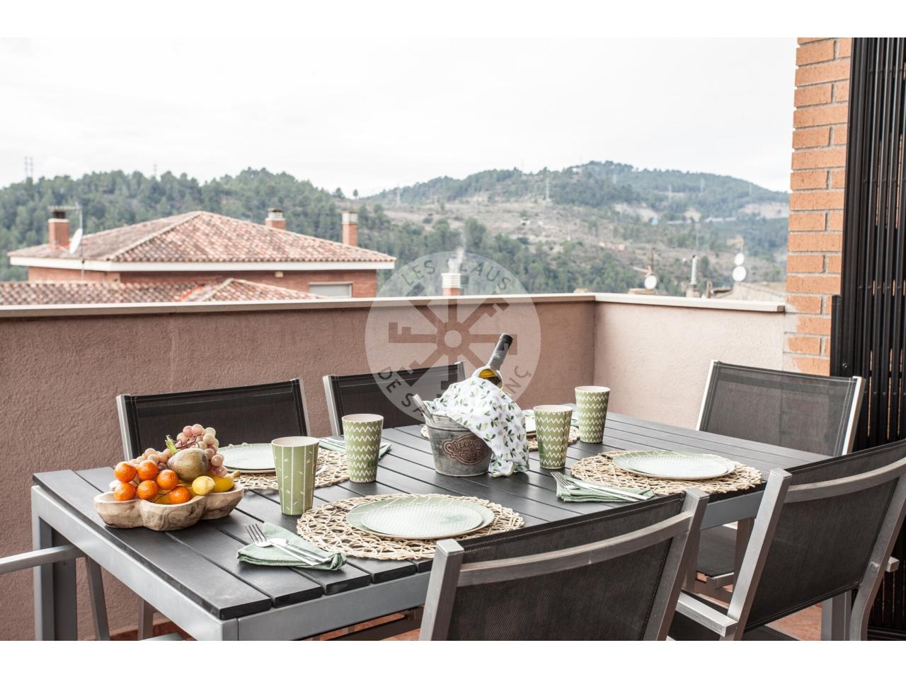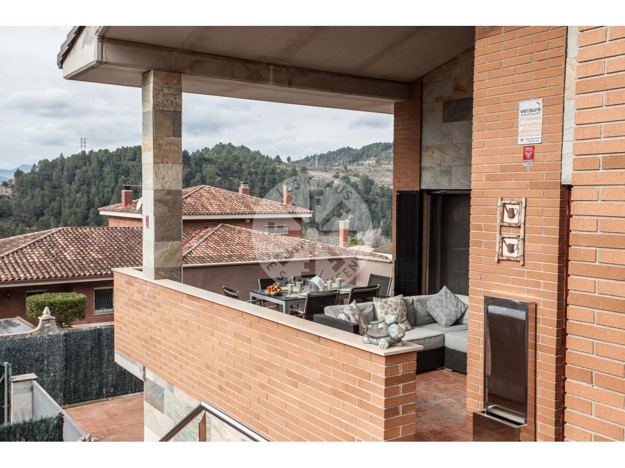 Espectacular casa de 250 m², en parcela de 400 m². 5 habitaciones dobles (una de ellas con vestidor), gran salón comedor de 34 m² con chimenea, amplia cocina de 10 m² con lavadero de 5 m², 2 baños completos (uno con bañera de hidromasaje), garaje de 57 m² y porche de 22 m² para disfrutar de los atardeceres sobre Montserrat. Muy próxima al centro de la población, colegio, guardería y piscina municipal. A pocos minutos de Manresa y accesos a C16 y C55.¡Â