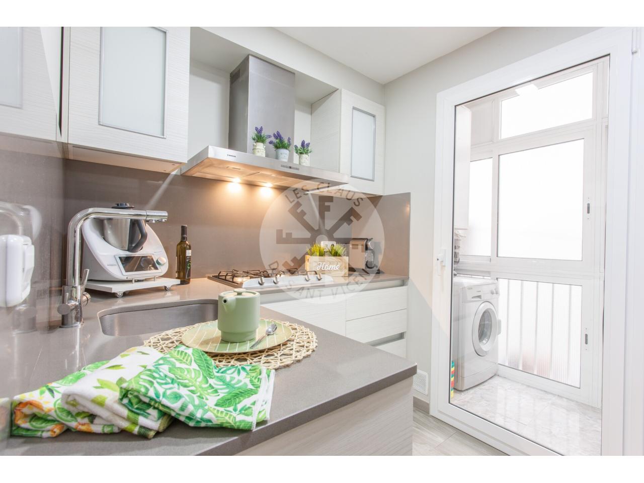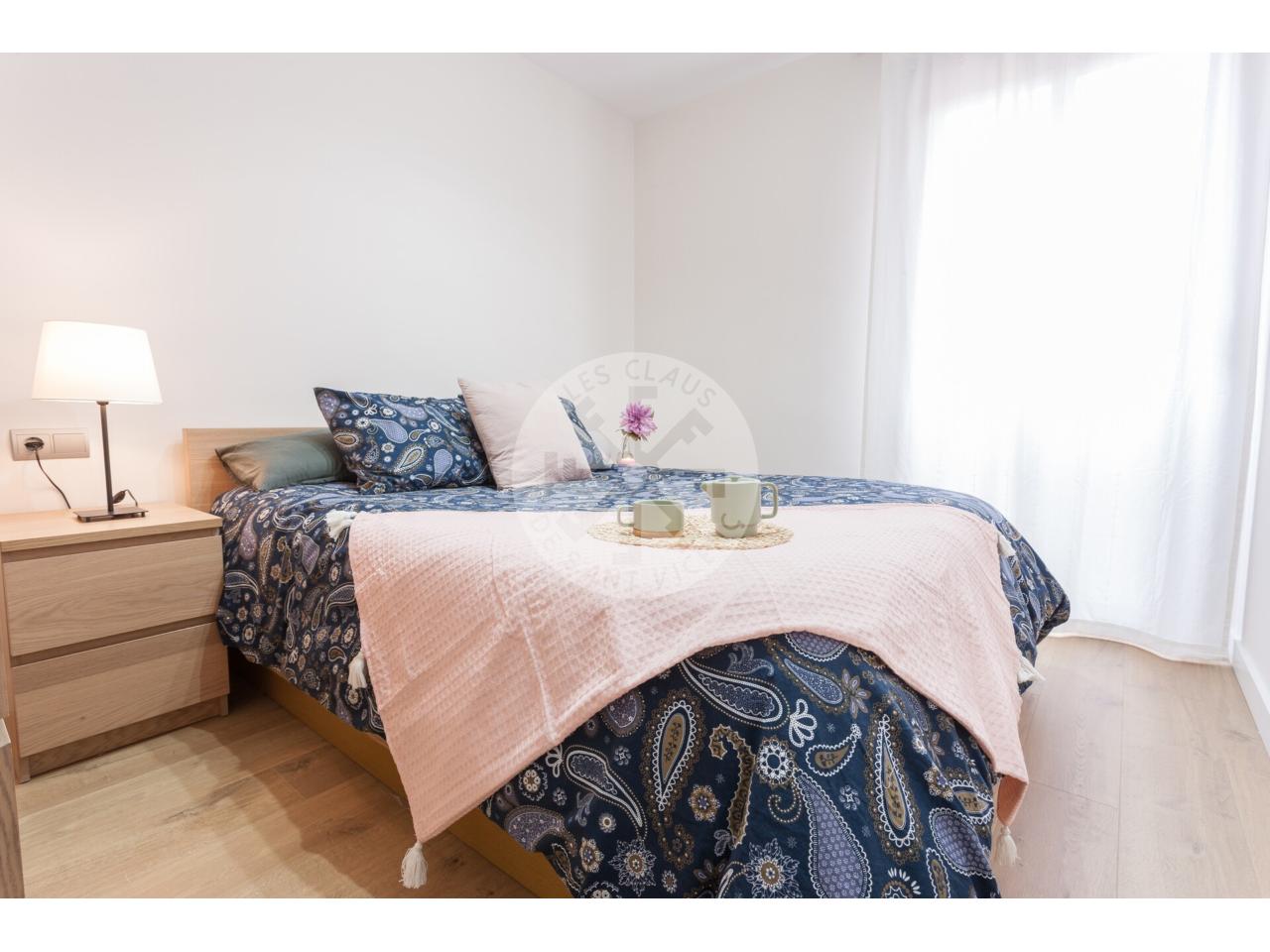 Exclusivo piso de 74 m² semi nuevo, totalmente reformado con acabados de máxima calidad. 2 habitaciones dobles (una de ellas suite con vestidor), amplio y soleado salón comedor de 23 m² con salida a terraza de 4 m², cocina de 8 m², 1 baño completo con bañera, 1 aseo. Plaza de aparcamiento y trastero de 24 m² en el mismo edificio. Terraza comunitaria para el disfrute de los más pequeños. Situado en zona muy tranquila, próximo al centro, paradas de autobús y